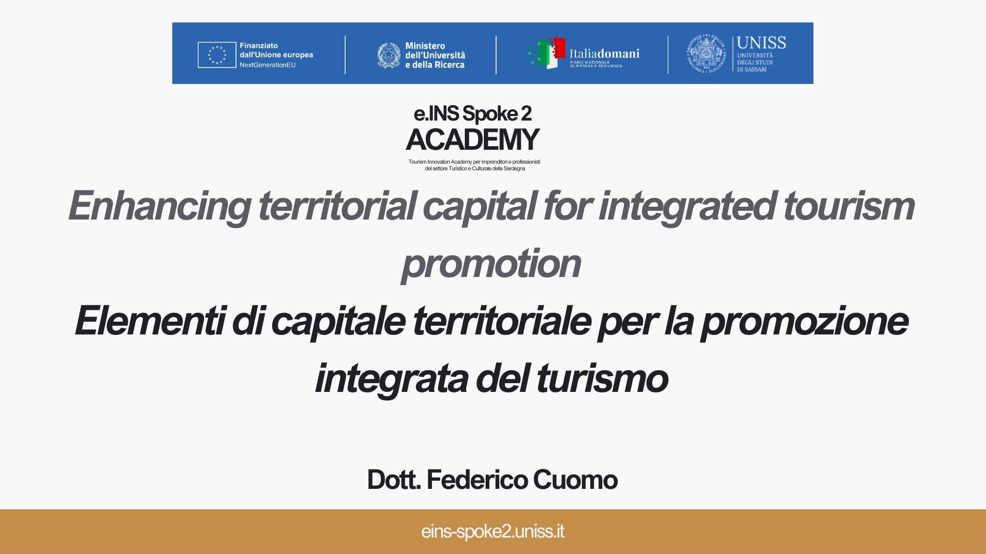Il modulo Enhancing territorial capital for integrated tourism promotion – Elementi di capitale territoriale per la promozione integrata del turismo offre un approccio essenziale per comprendere e valorizzare il capitale territoriale come leva per lo sviluppo e la promozione dei territori. Il corso affronta i principali elementi che compongono il capitale territoriale, mettendo in luce le sue caratteristiche, i suoi obiettivi e le metodologie utili a trasformarlo in uno strumento di attrazione di investimenti, turisti e nuovi residenti. Particolare attenzione è dedicata al ruolo dei fattori hard e soft nella competitività territoriale e alla natura pluridimensionale che caratterizza ogni contesto geografico. Attraverso l’analisi di fasi operative e strategie integrate, il modulo fornisce conoscenze e strumenti di base per interpretare e promuovere efficacemente le risorse locali in una prospettiva sostenibile e innovativa.